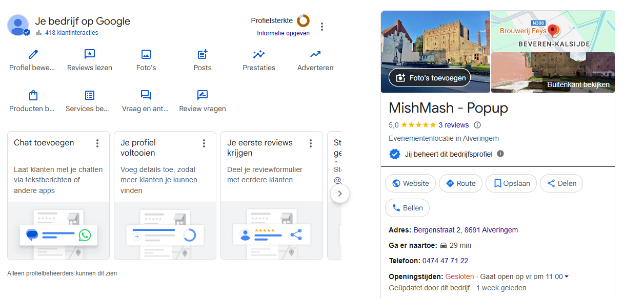 Eén van de sterke (en onderschatte) kanten van GMB is dat je jouw klanten om reviews kan vragen én dat Google mensen die jouw locatie bezocht hebben, ook kan vragen om een review te geven.